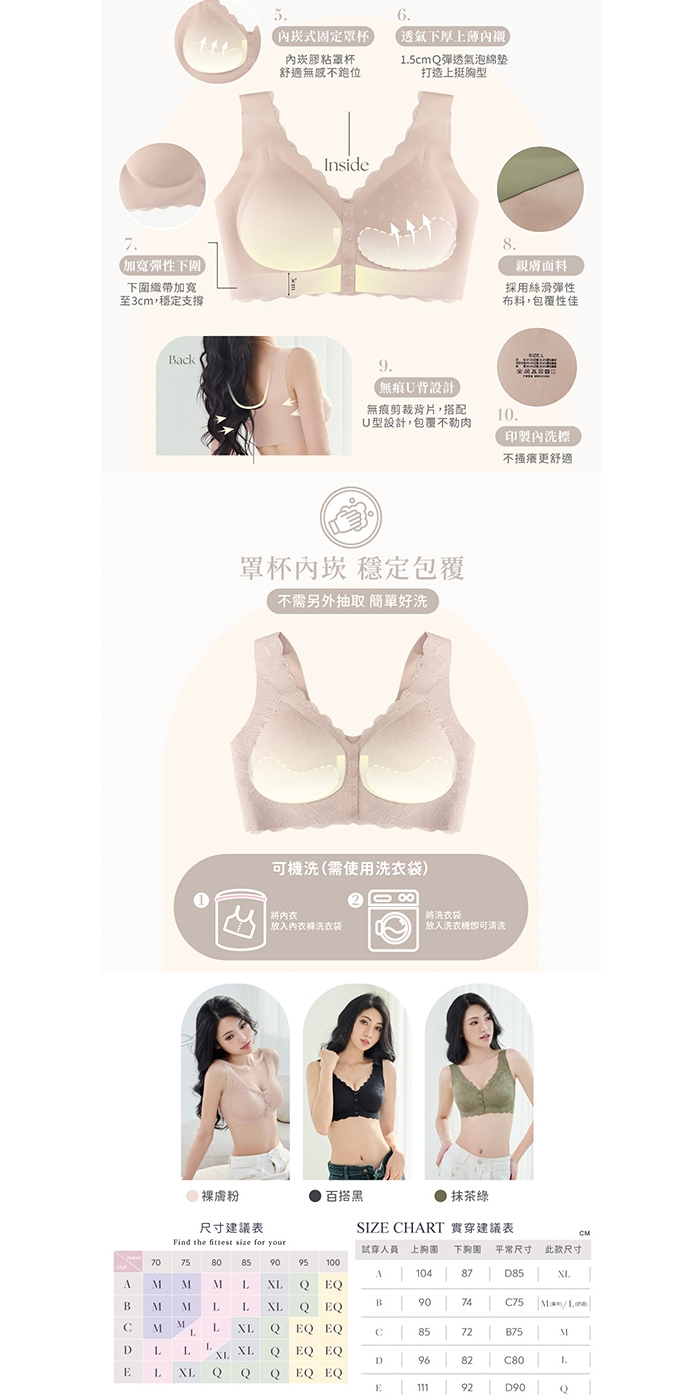 ★ 內崁式固定罩杯,機洗不跑位