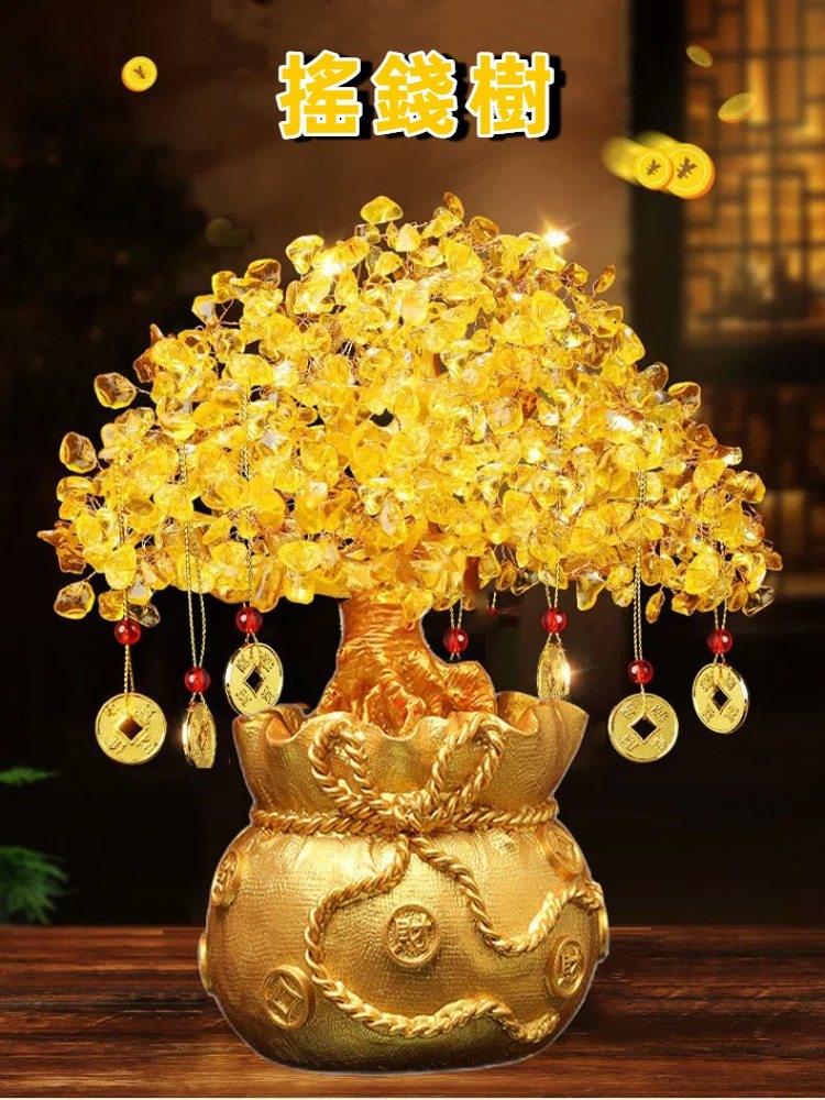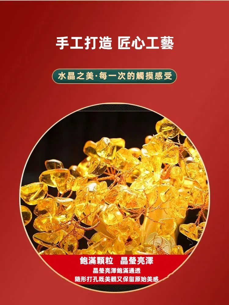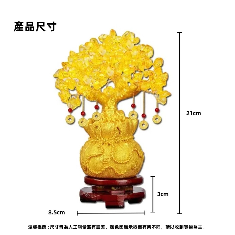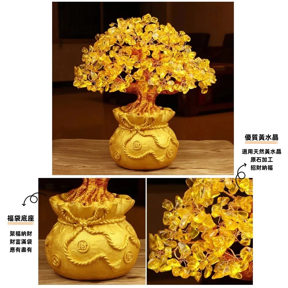 【A&R】招財黃水晶樹 聚寶盆 黃金萬兩小福袋款 附旋轉底座