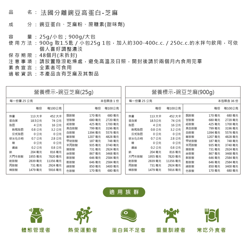 【 豌豆芝麻風味 100%原味法國豌豆蛋白】