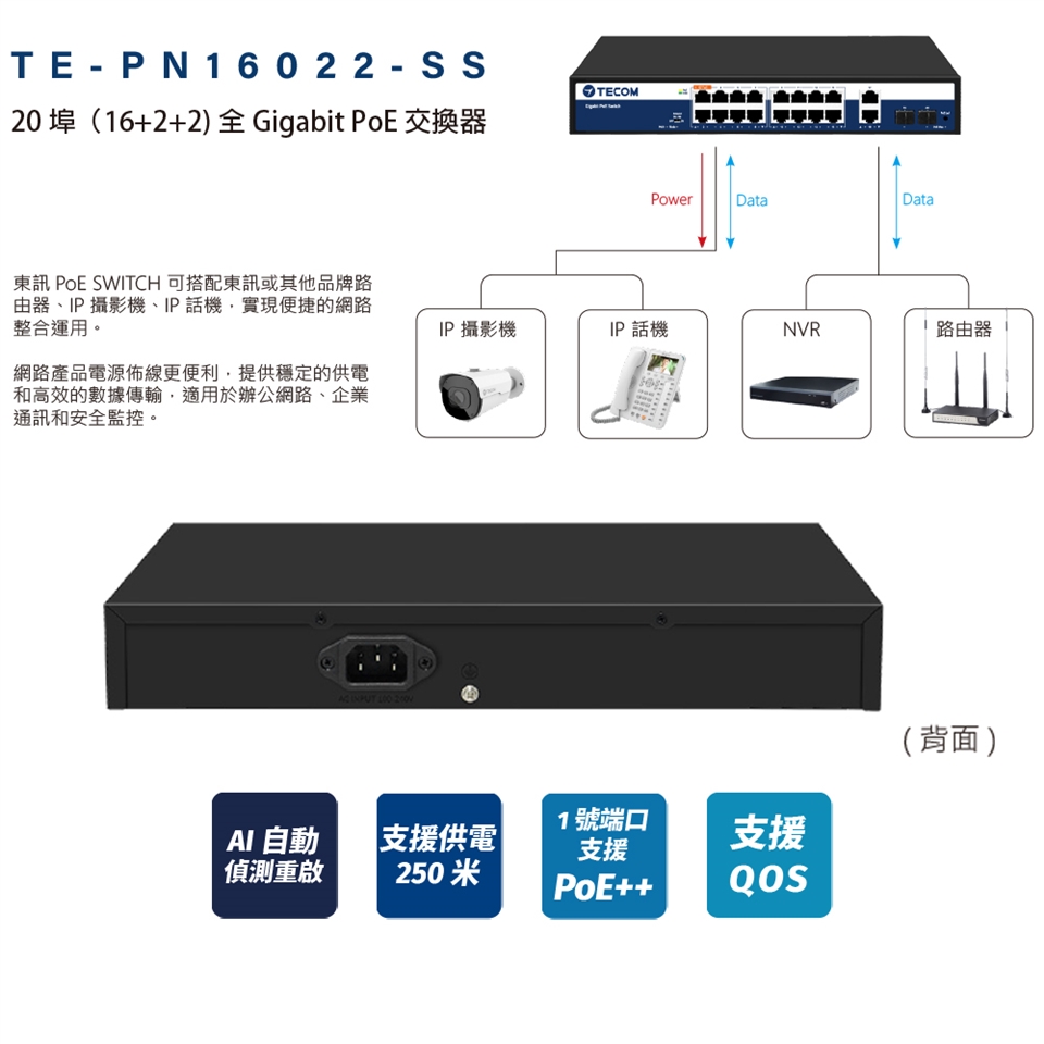 ■ 支援 PoE 優先級,從 1 至 16 埠依序供電,預設為開啟