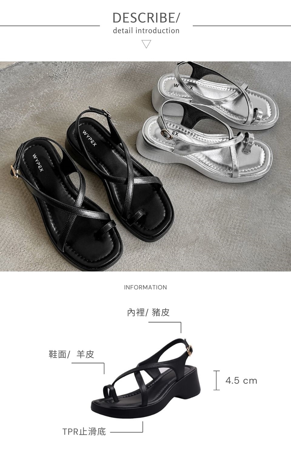 底高: 跟高約4.5公分