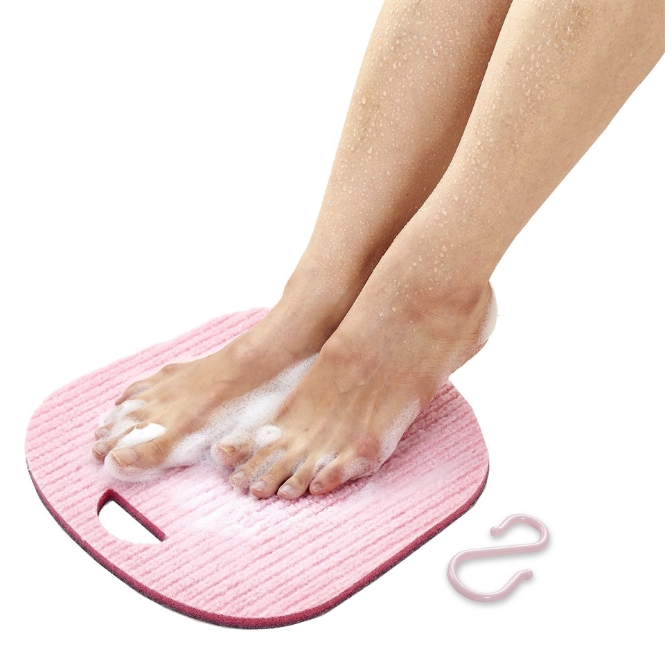 ●坐在的浴椅上就可以用輕鬆的姿勢摩擦雙腳去除角質。