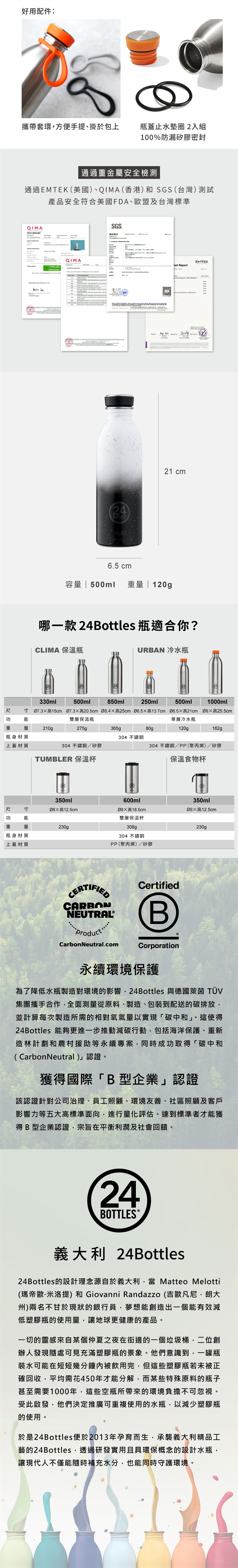 24Bottles輕量冷水瓶僅120 公克重,輕鬆隨身無負擔,100%防漏設計讓您就算是倒置收納都能安心。