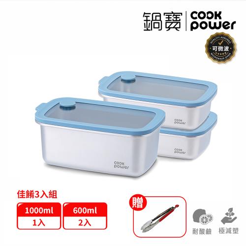 (均一價999)【CookPower 鍋寶】鮮盾pro系列可微波不鏽鋼保鮮盒組合
