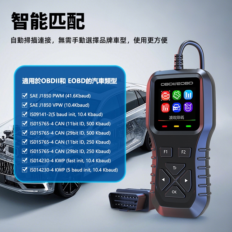 ※ 適用於OBDII和EOBD介面,不支持OBD I 和JOBD。