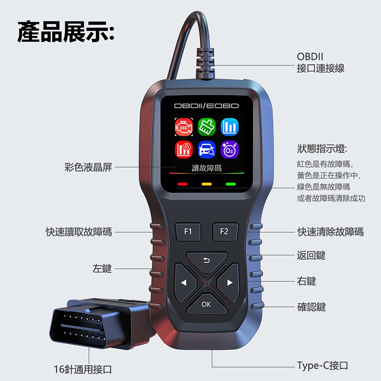 綠燈: 無故障碼 或是 故障碼清除成功