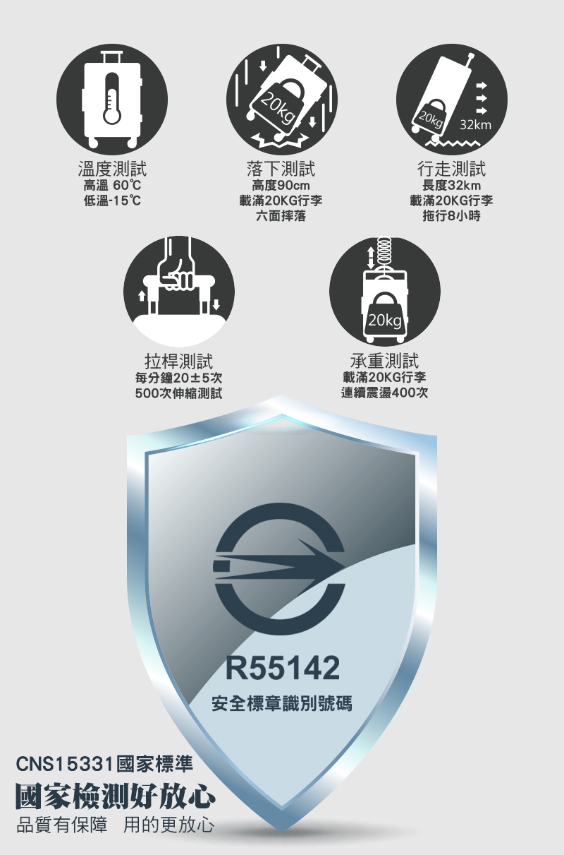 ● 國家CNS 落下、行走、裝載、拉桿檢驗合格