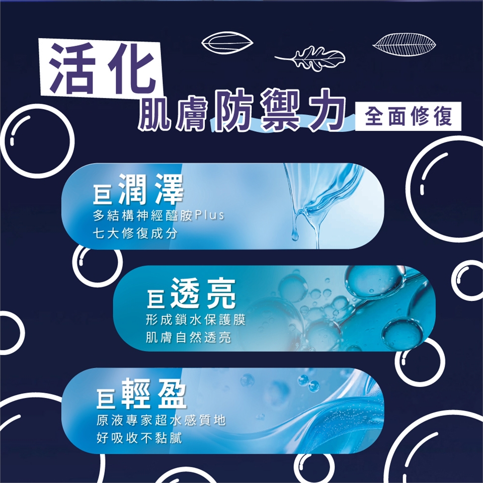 使用方法:早晚清潔肌膚後並在化妝水之後,取2~3滴全臉按摩至吸收。