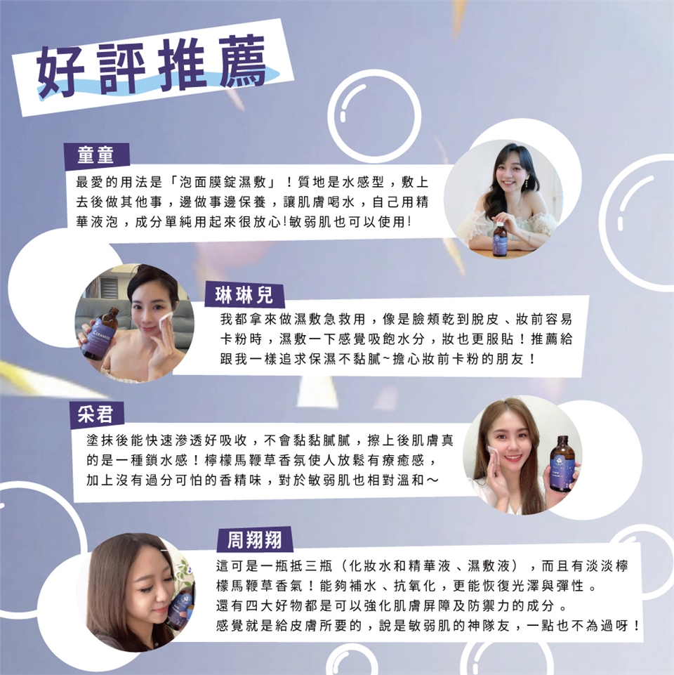 ‧使用中或使用後肌膚若有異常現象時,請停止使用並洽詢皮膚科醫生。