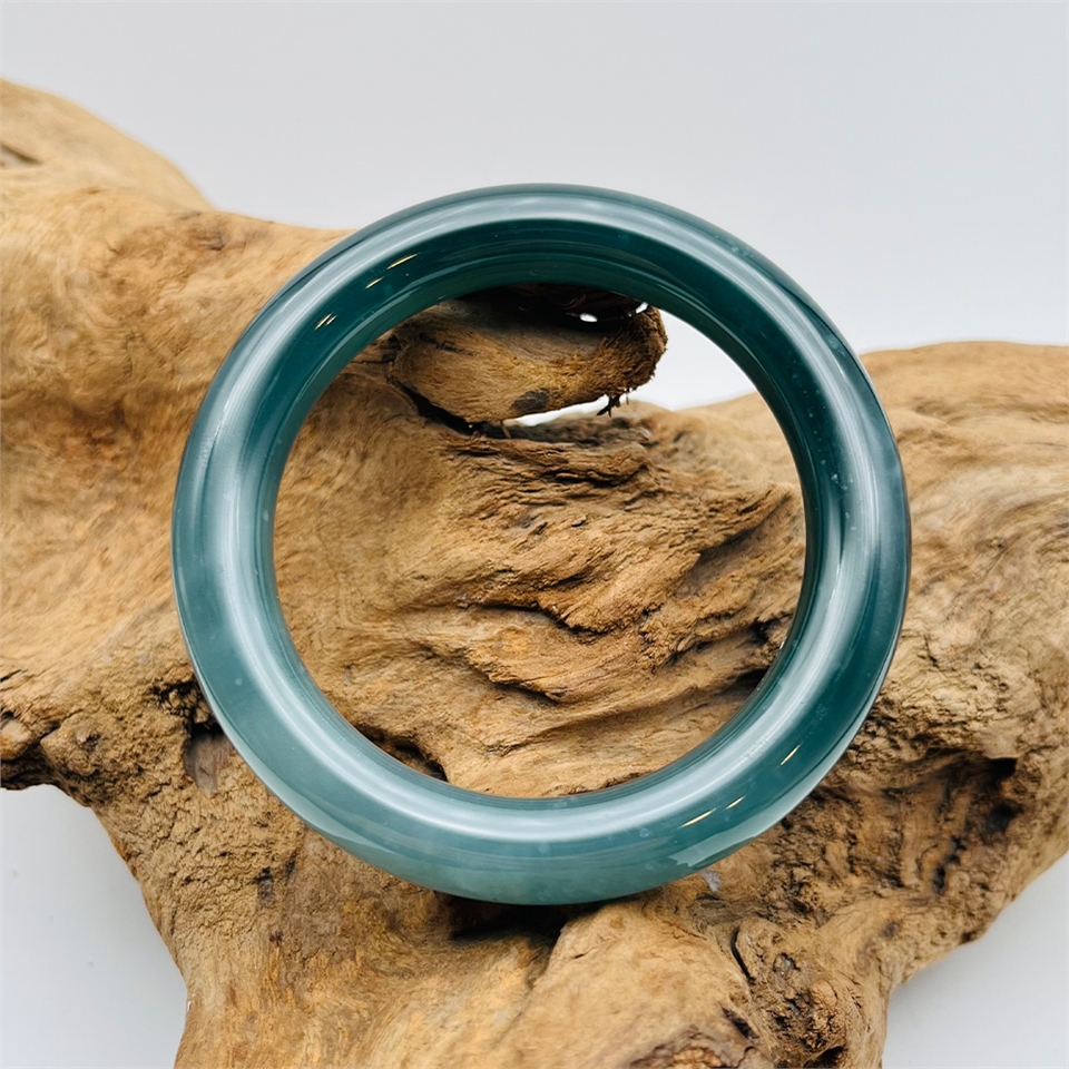 【肌容雪】緬甸天然A貨翡翠海水藍翡翠圓條手鐲 編號852(鐲寬60.2mm #19.5號)