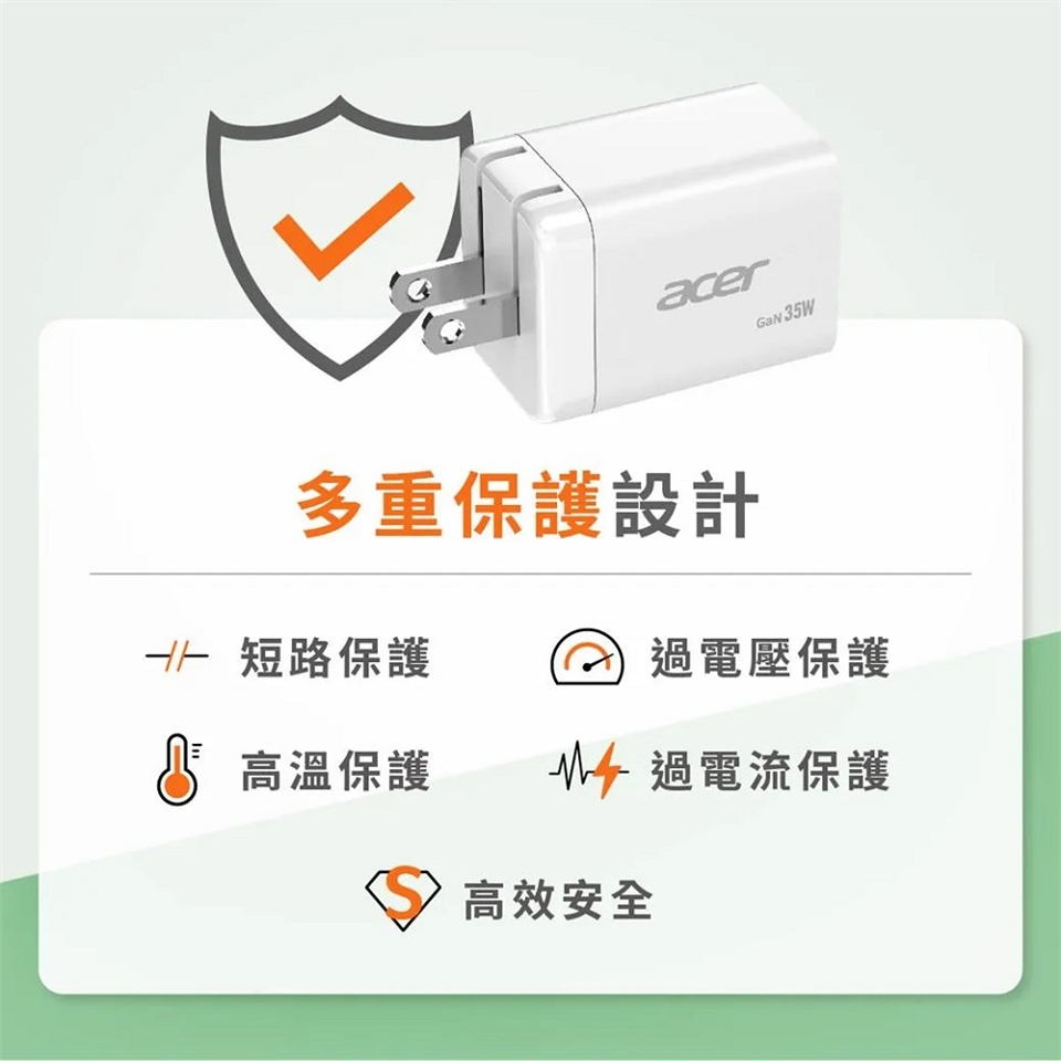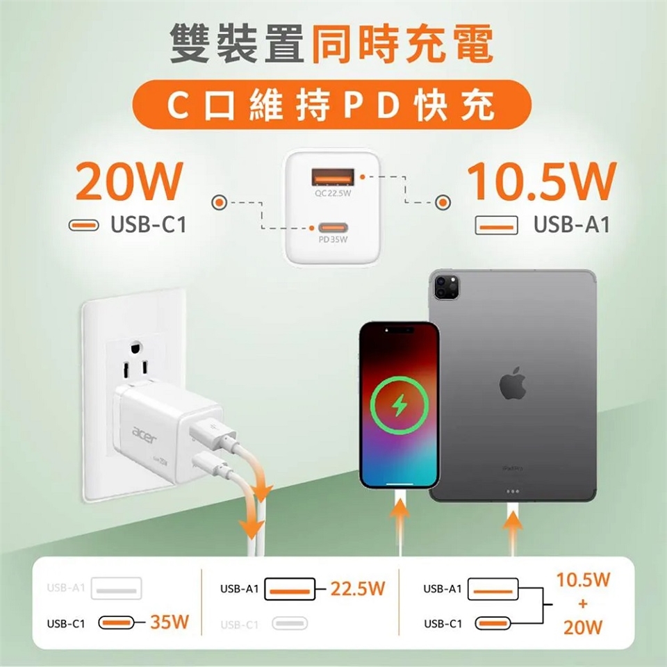 【Acer 宏碁】40W氮化鎵GaN急速快充充電器 OPS4D0 (Type-Cx2)