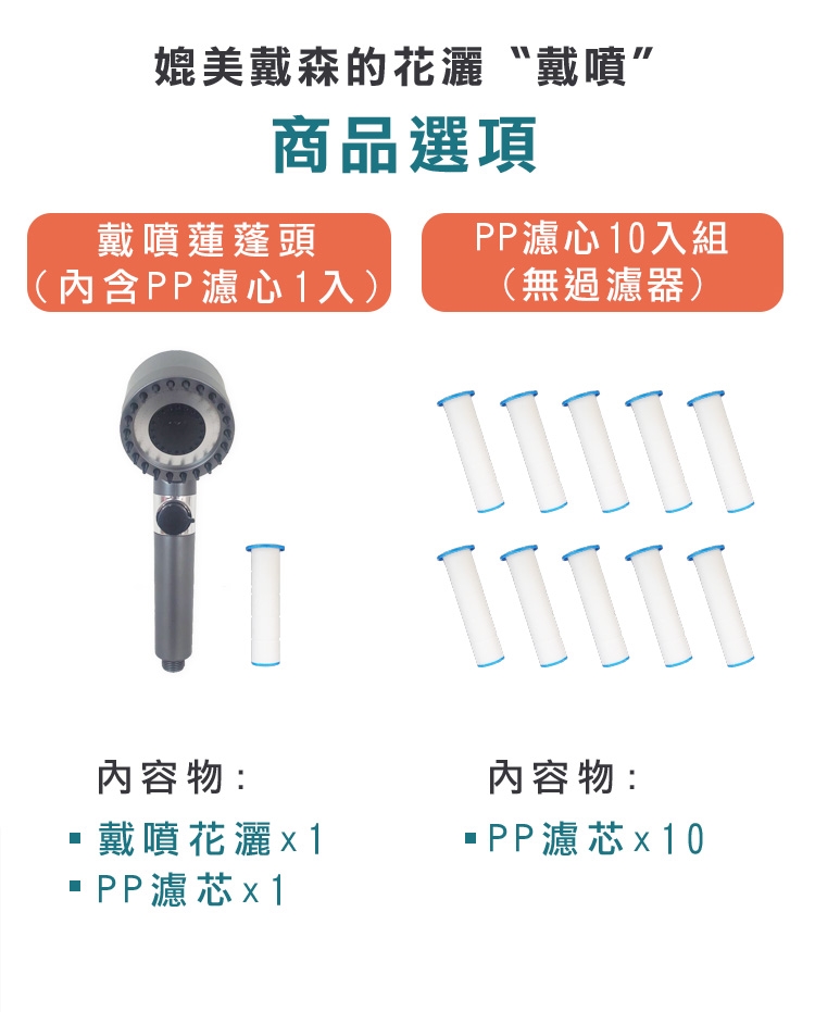 選項:戴噴蓮蓬頭(內含PP濾心1入)/PP濾心10入組(無過濾器)