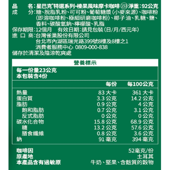 ★咖啡來自100%阿拉比卡咖啡豆
