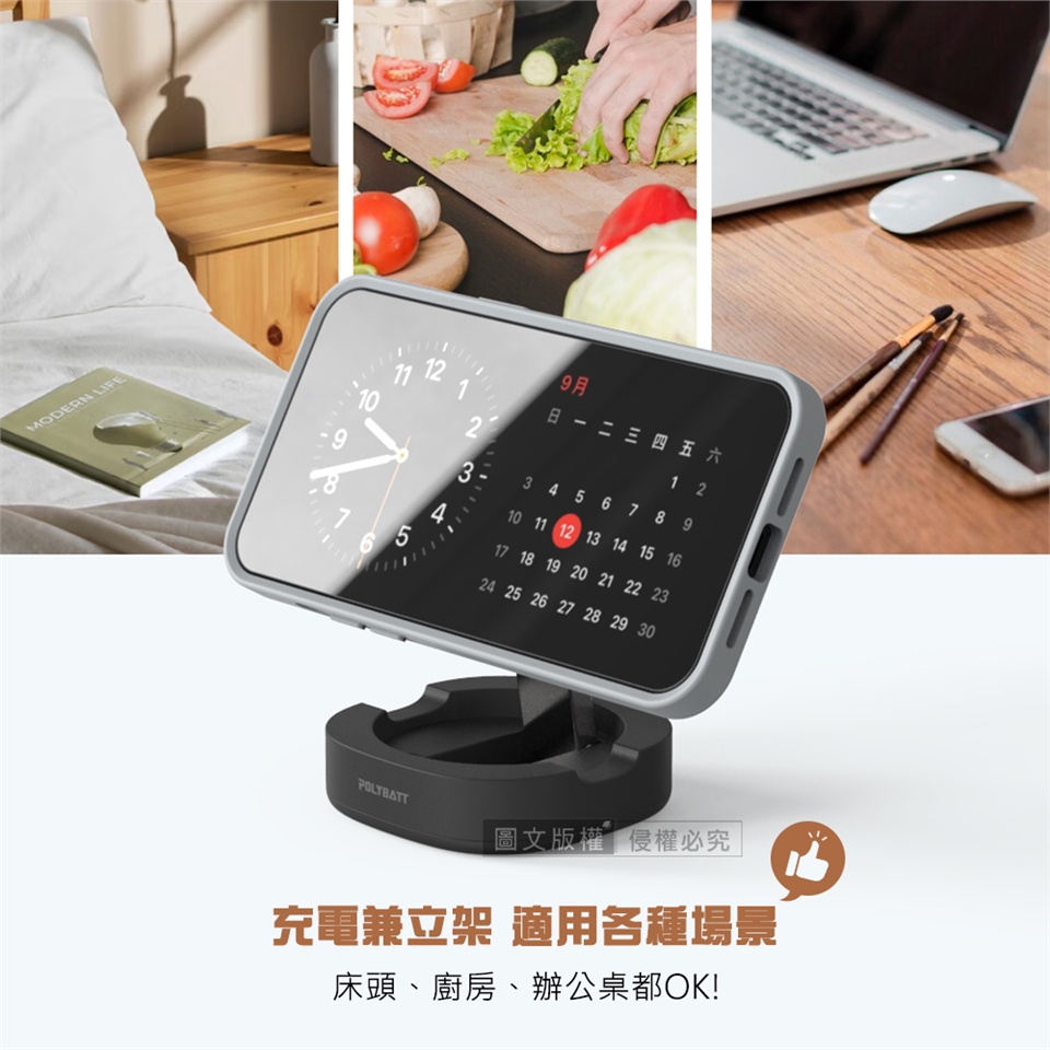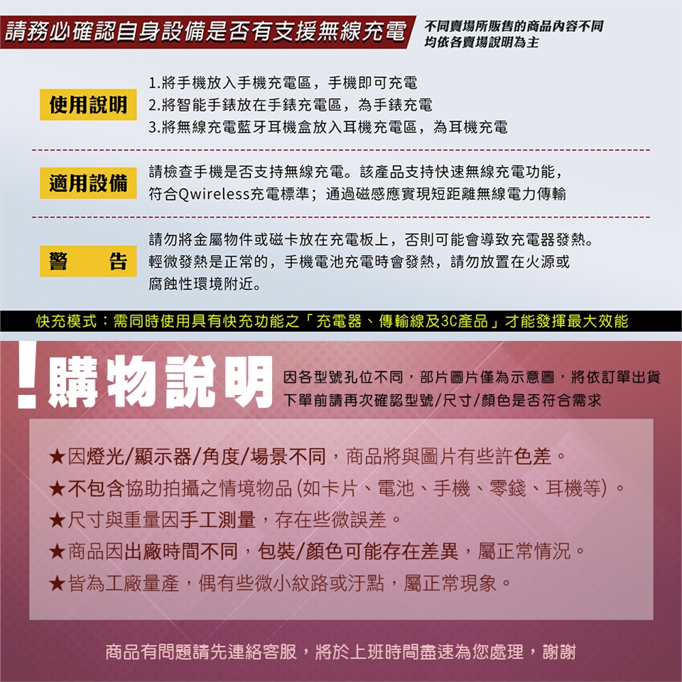 警告:請勿將金屬物件或磁卡放在充電板上,否則可能會導致充電器無法正確使用。