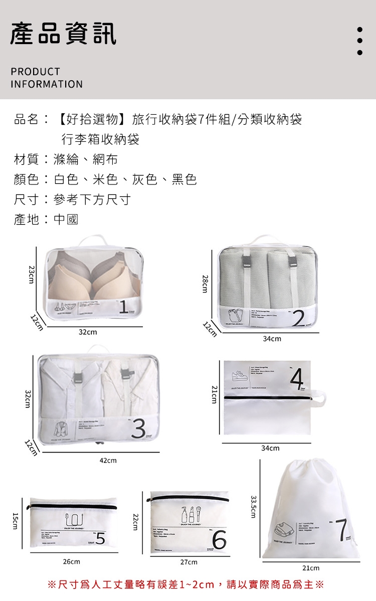 品名:【好拾選物】旅行收納袋7件組/分類收納袋