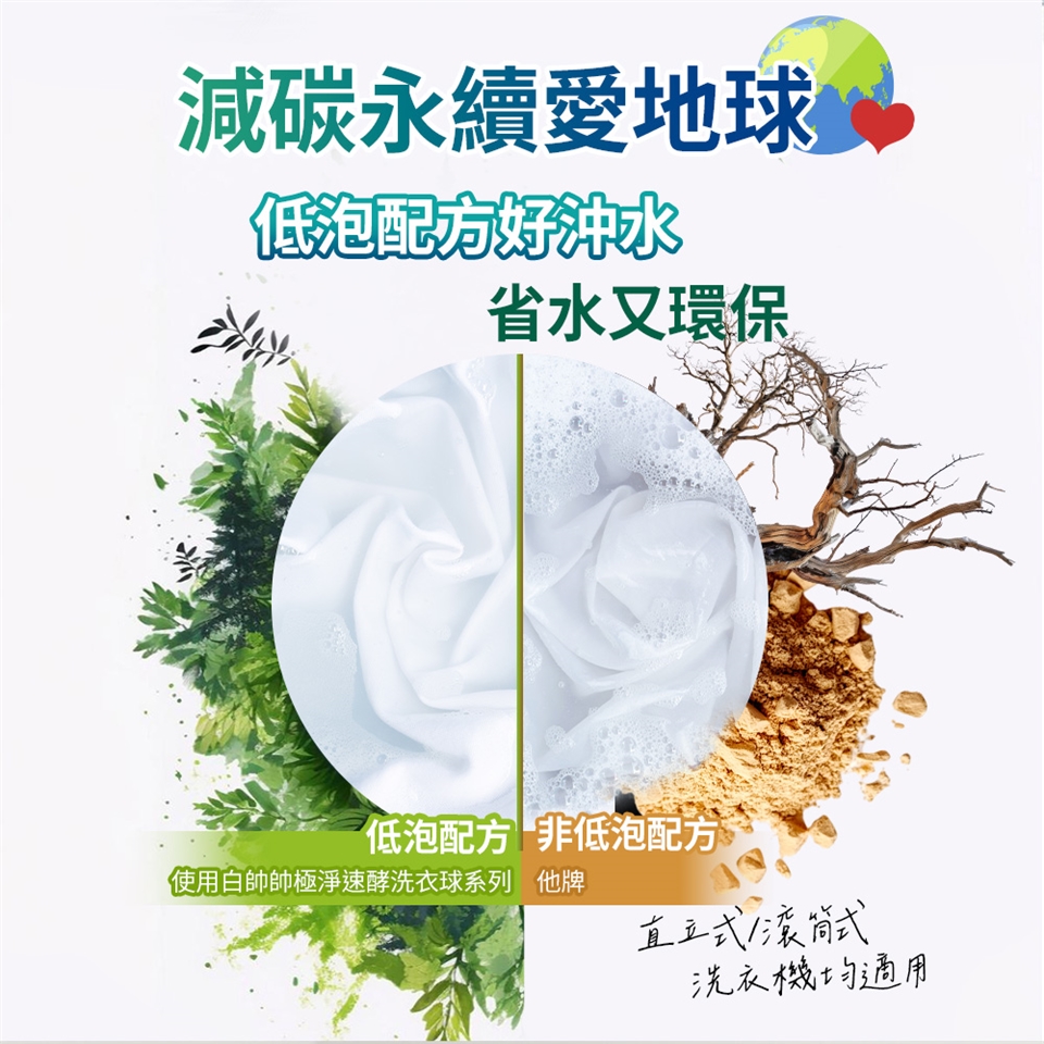 【中性低泡環保】天然棕櫚油醇界面活性劑,不刺激肌膚,能被大自然分解。低泡沬配方適用於直立/滾筒式洗衣機,好沖、省水更環保。