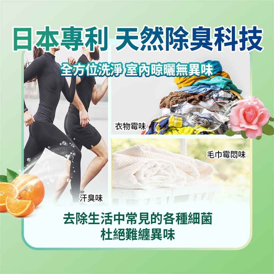 【日本專利天然除臭】植物除臭因子,快速包覆、中和、分解異味,有效去除衣物臭源,清新去味。