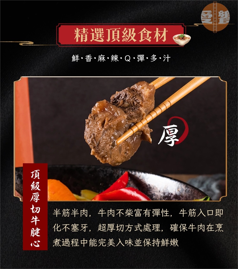 - 精選頂級食材:半筋半肉,牛肉不柴富有彈性,牛筋入口即化不塞牙。