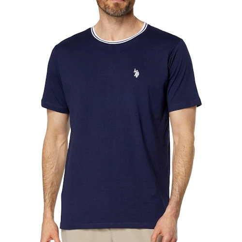 【US POLO】2025男時尚小馬球標誌寶藍色圓領短袖T恤