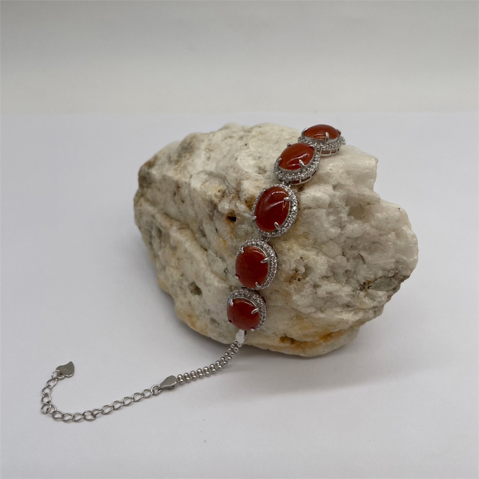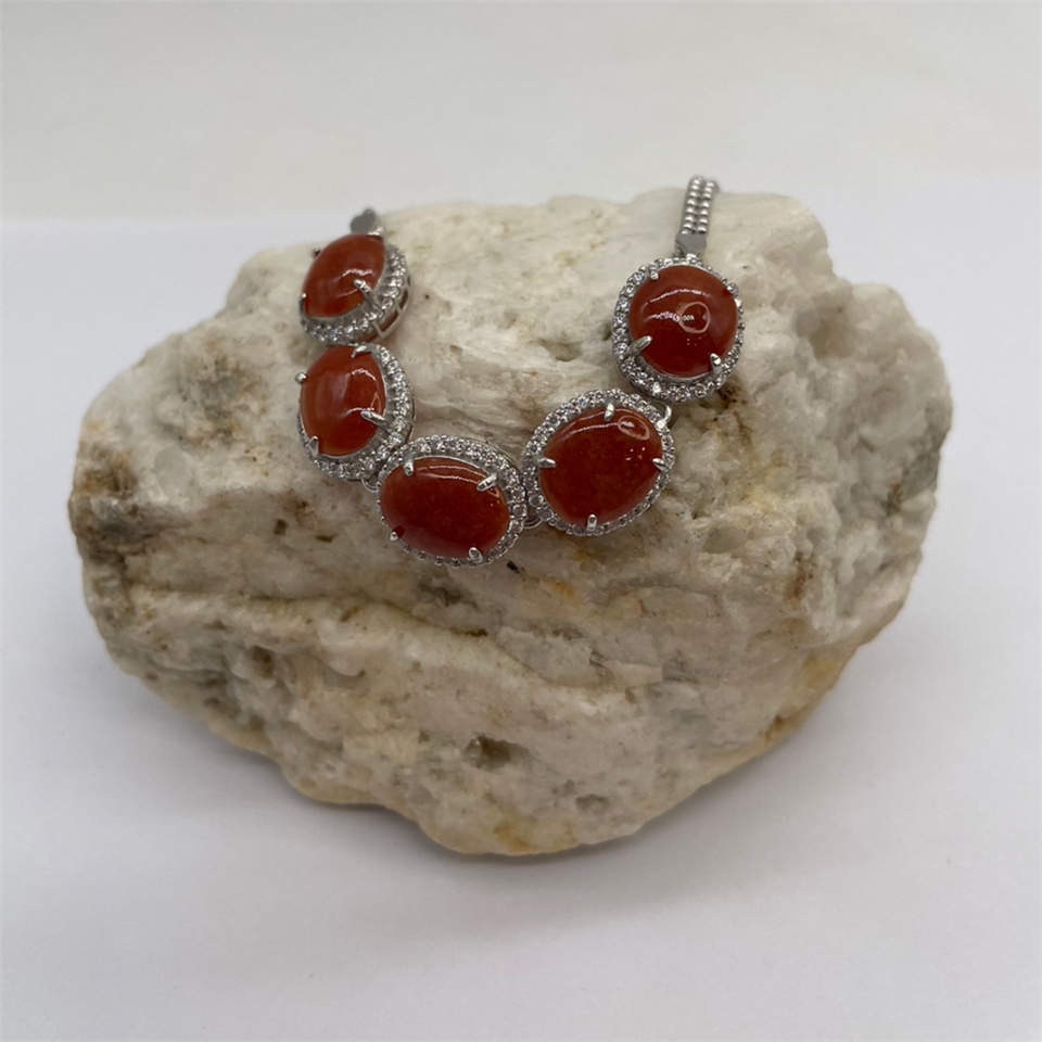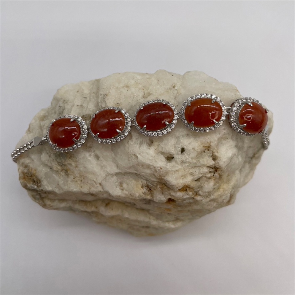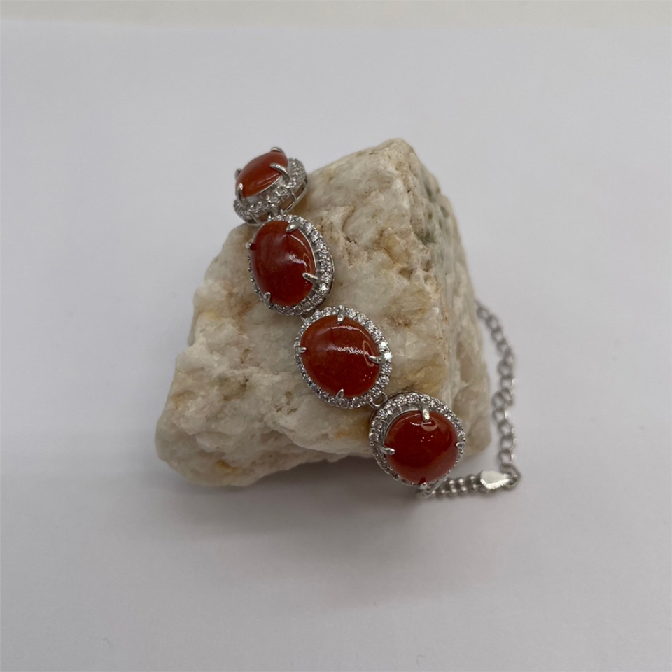 【肌容雪】天然緬甸A貨紅翡翠蛋面手鍊 編號875