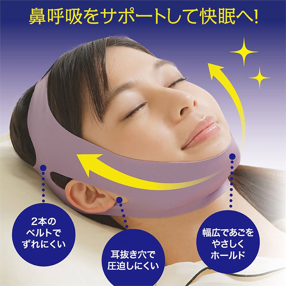 - 幫助睡眠時嘴巴閉合,舒適的耳部挖空設計,耳朵不易受壓;雙重加強固定帶不易移位。