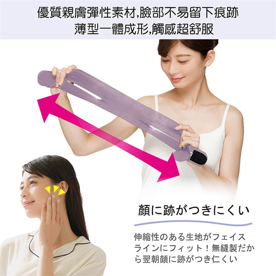 - 睡眠時用鼻子呼吸幫助降低打鼾,同時緊緻拉提臉部抗衰老,塑造臉部完美曲線。
