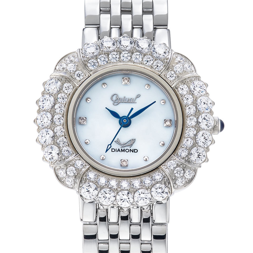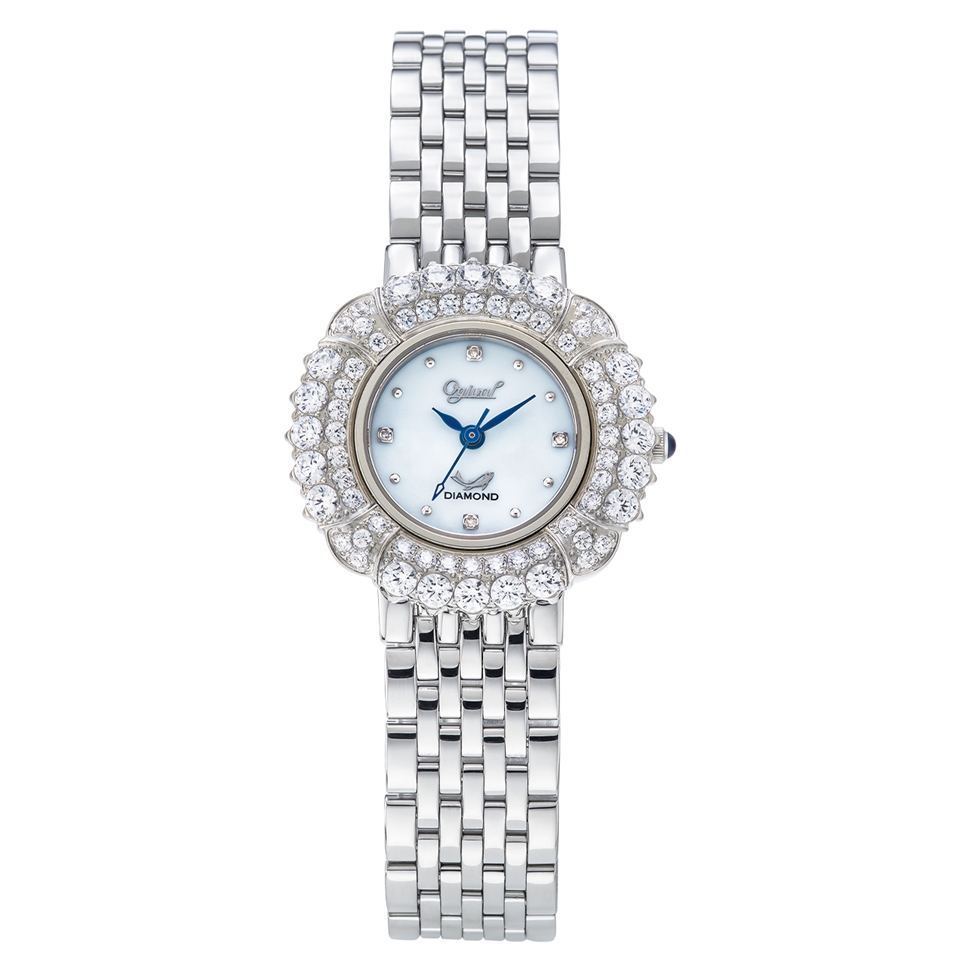 【Ogival 愛其華】璀璨薔薇 滿鑽珠寶腕錶 銀色