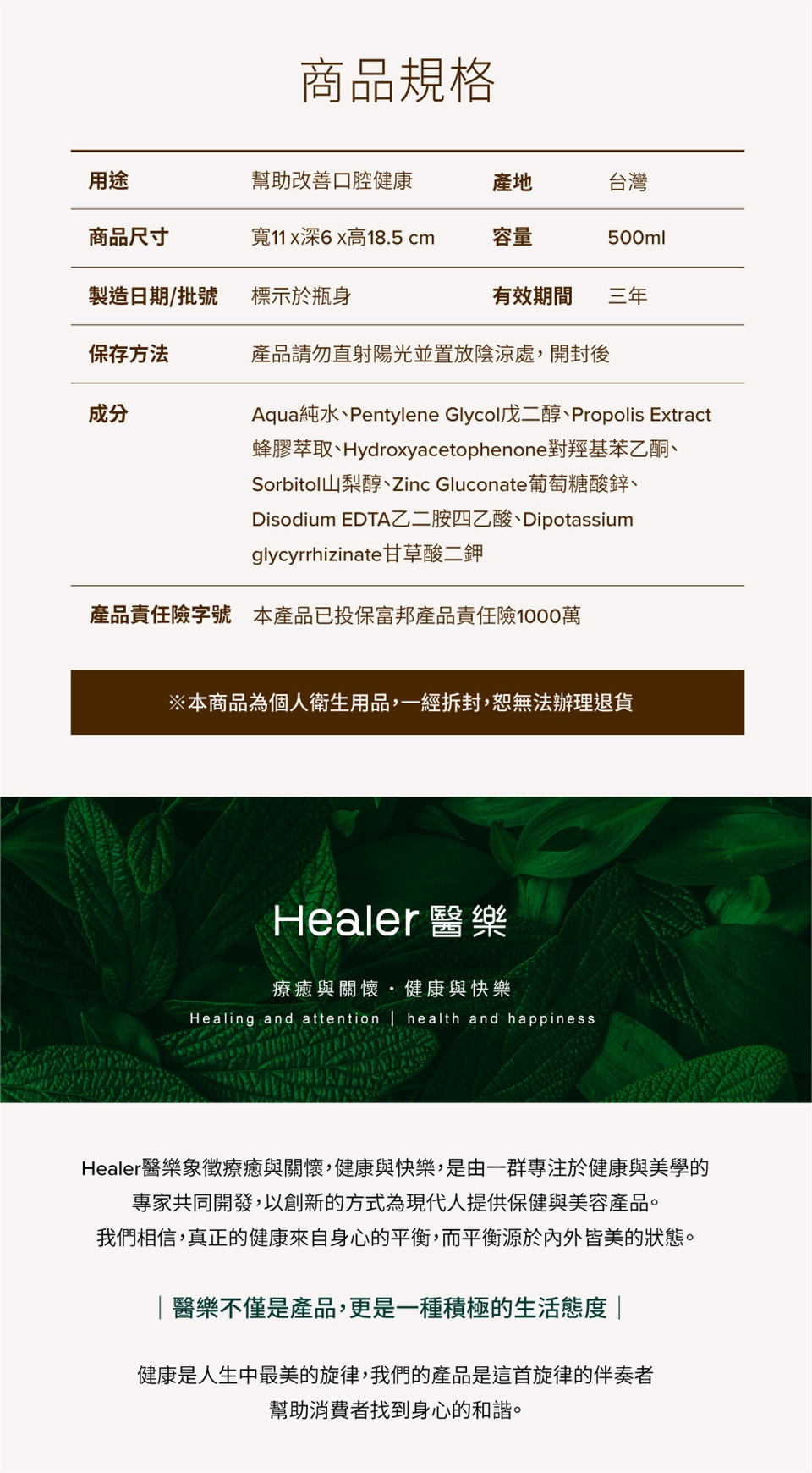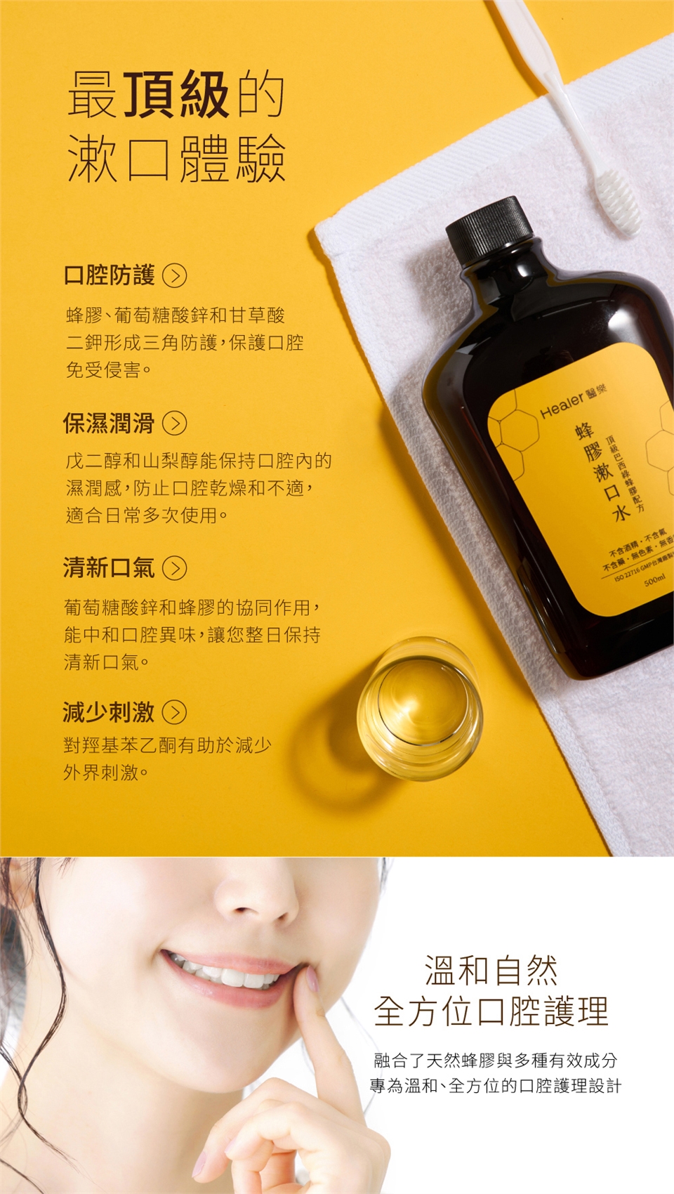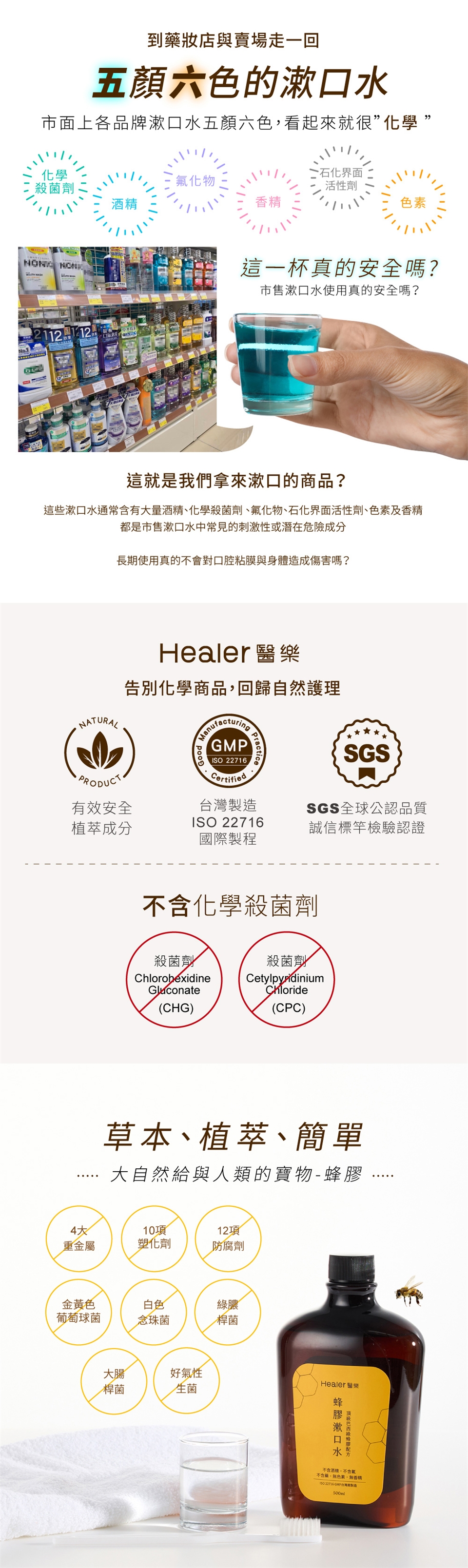 如果您使用過其他漱口水,覺得好辣、有很濃得化學味,一定不能錯過Healer醫樂蜂膠漱口水!