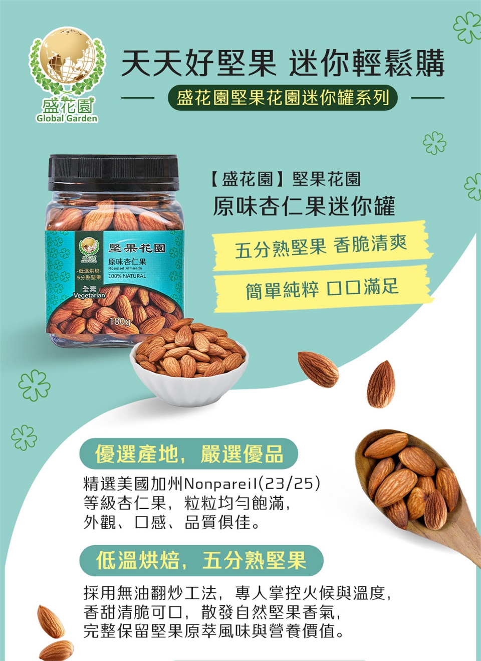 【盛花園】堅果花園原味杏仁果迷你罐(180g/罐)