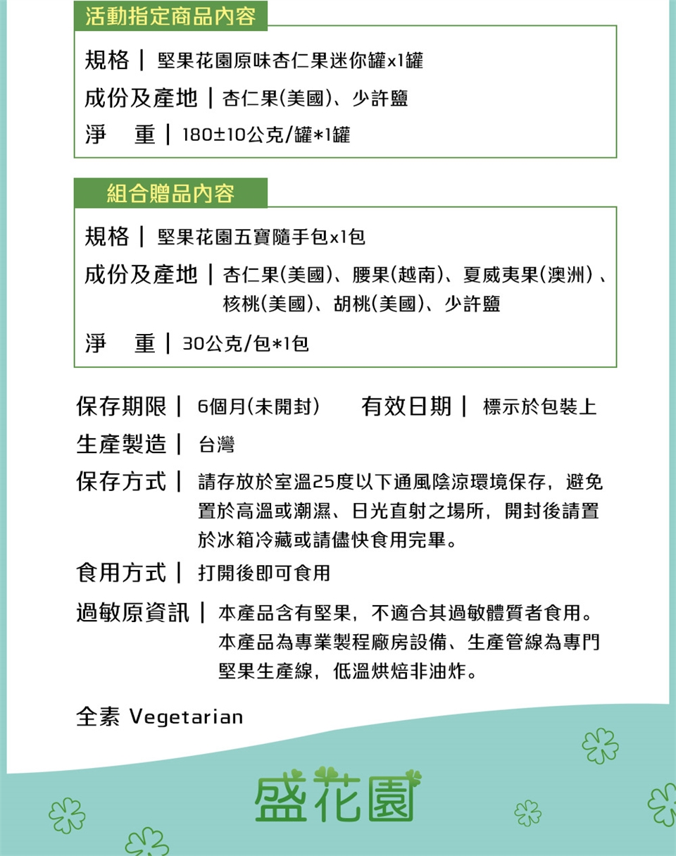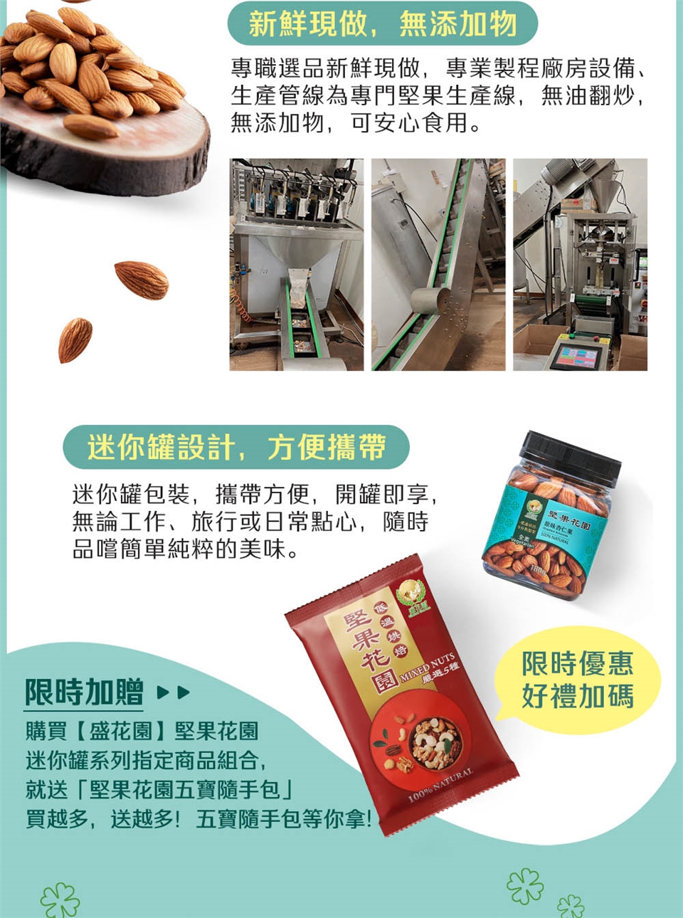 限時加贈! 購買【盛花園】堅果花園迷你罐系列指定商品組合,就送「堅果花園五寶隨手包」買越多,送越多!五寶隨手包等你拿!
