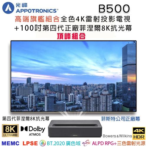 光峰B500 極致頂級雷射投影電視劇院 RGB+全色雷射廣色域搭配FSCREEN正廠菲涅爾100吋超薄固定框8K抗光幕頂規組合/含安裝