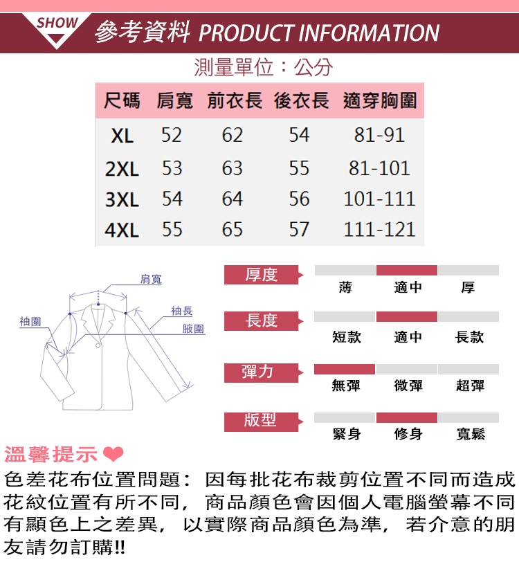 ◎ 正常穿脫,試衣服尺寸,符合尺寸後才可拆吊牌