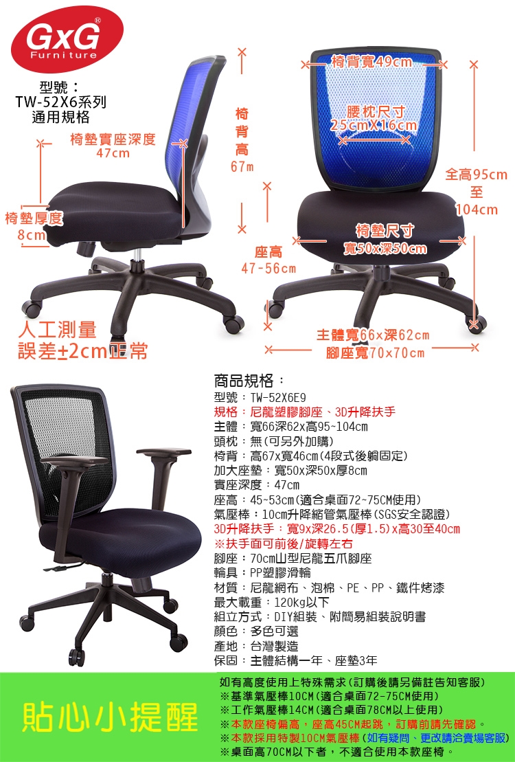 購買注意事項:本座椅高度,均以搭配標準桌高70~75CM使用。