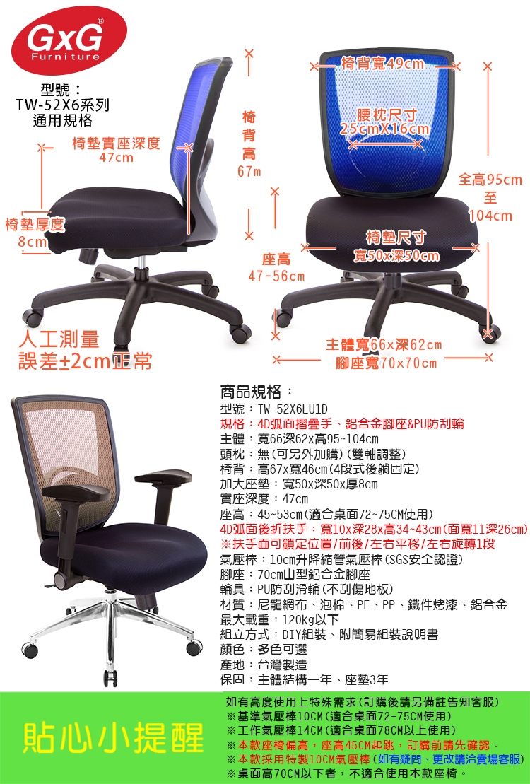 購買注意事項:本座椅高度,均以搭配標準桌高70~75CM使用。