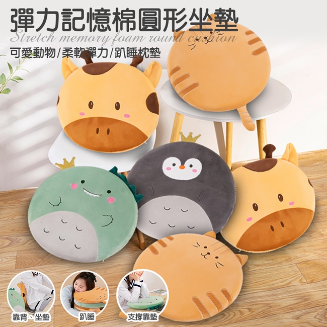 產品名稱:可愛動物柔軟彈力毛絨記憶棉圓形坐墊/四款任選