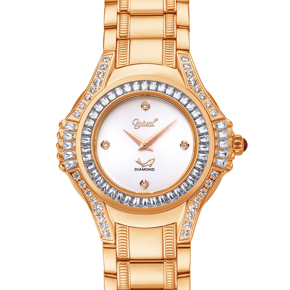 【Ogival 愛其華】女王風範 星鑽設計珠寶錶 玫瑰金