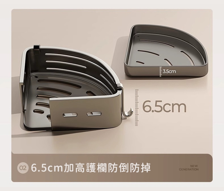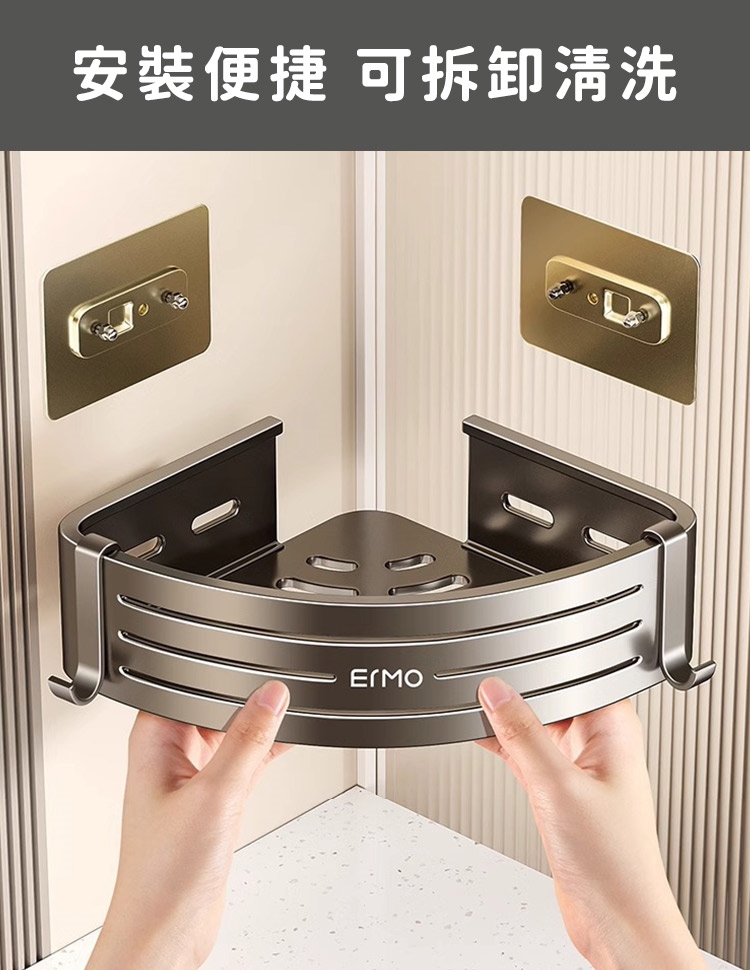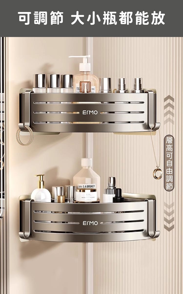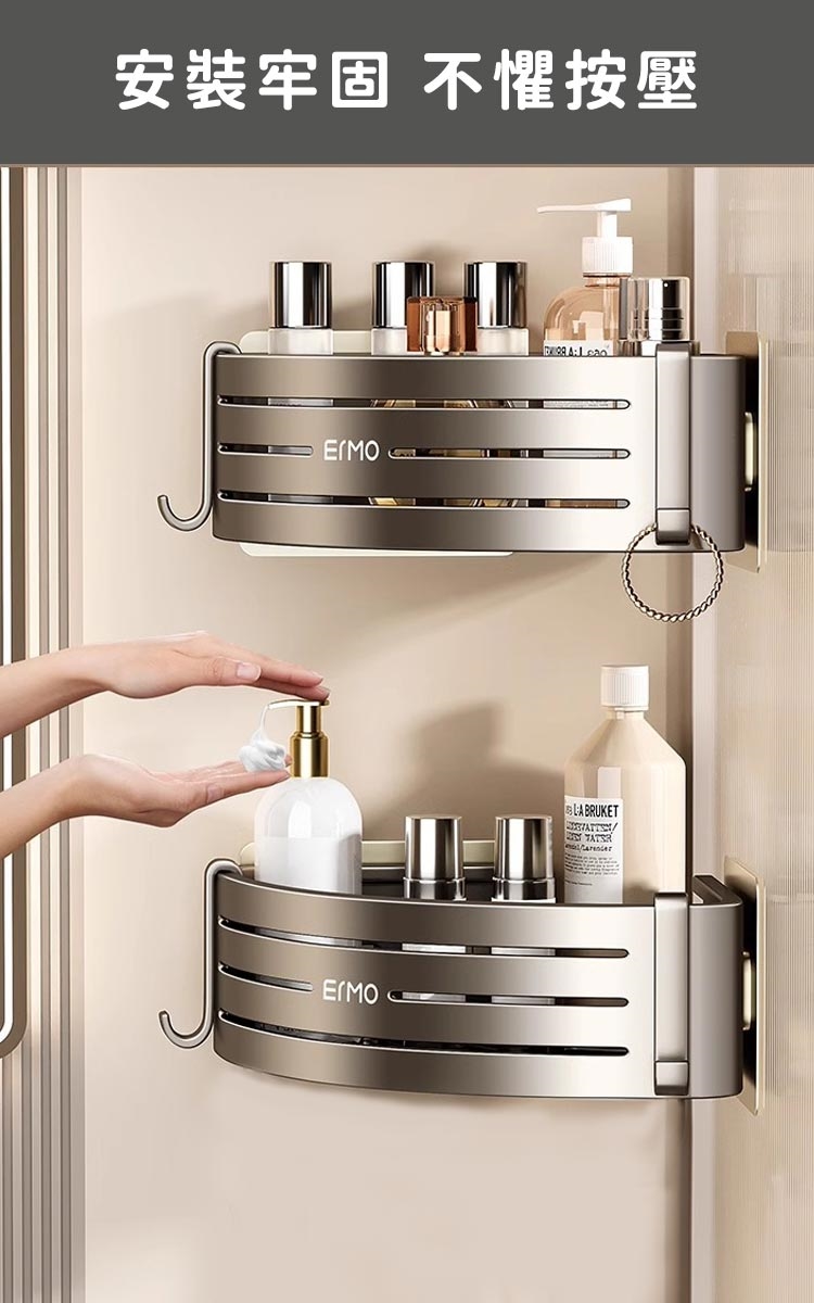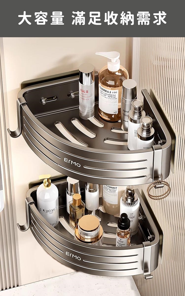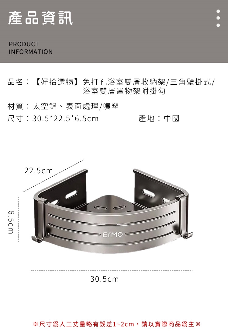 品名:【好拾選物】免打孔浴室雙層收納架/三角壁掛式/浴室雙層置物架附掛勾