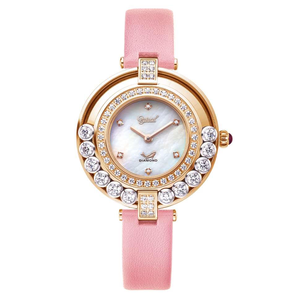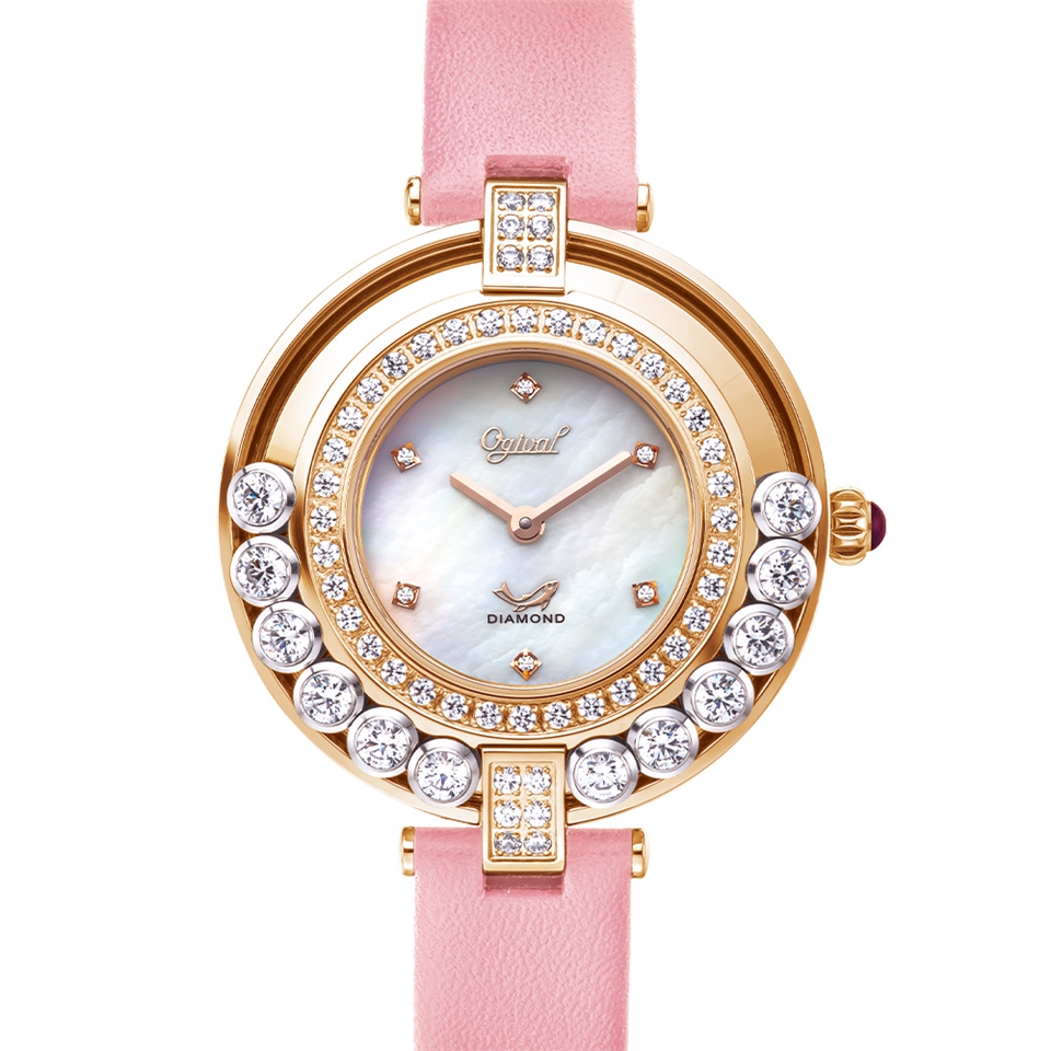 【Ogival 愛其華】流星系列 流光瀲灩珠寶錶 白母貝粉帶