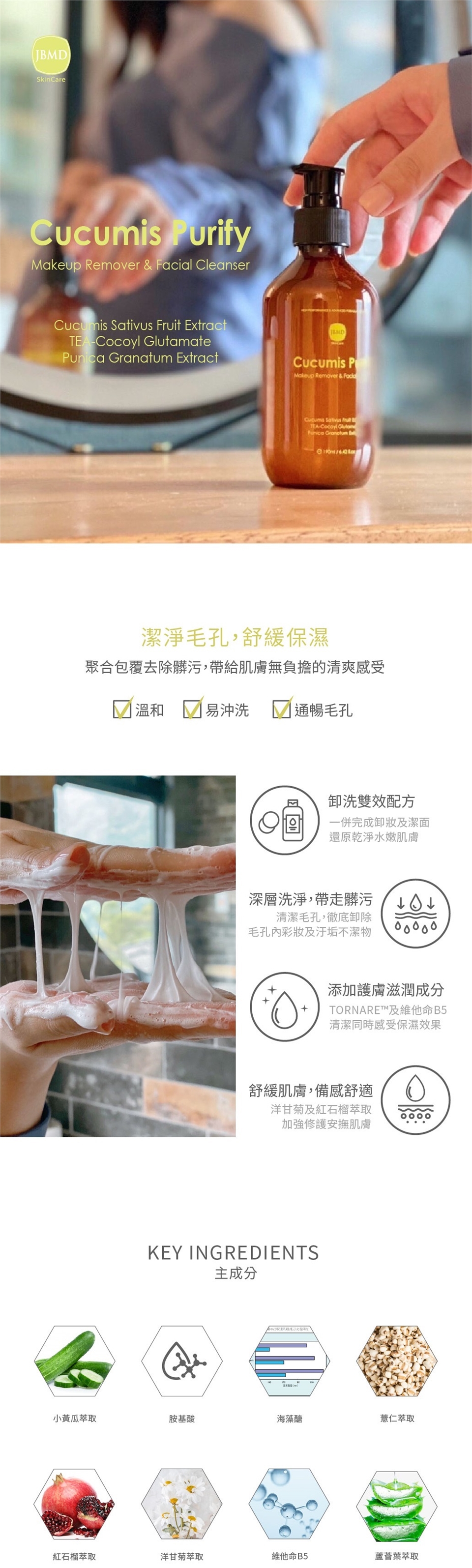 JBMD靚倍爾 小黃瓜胺基酸卸洗潔膚凝露400ml *1