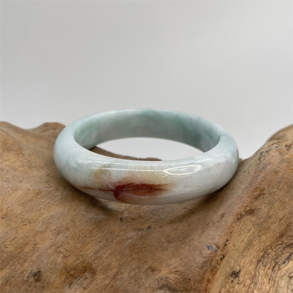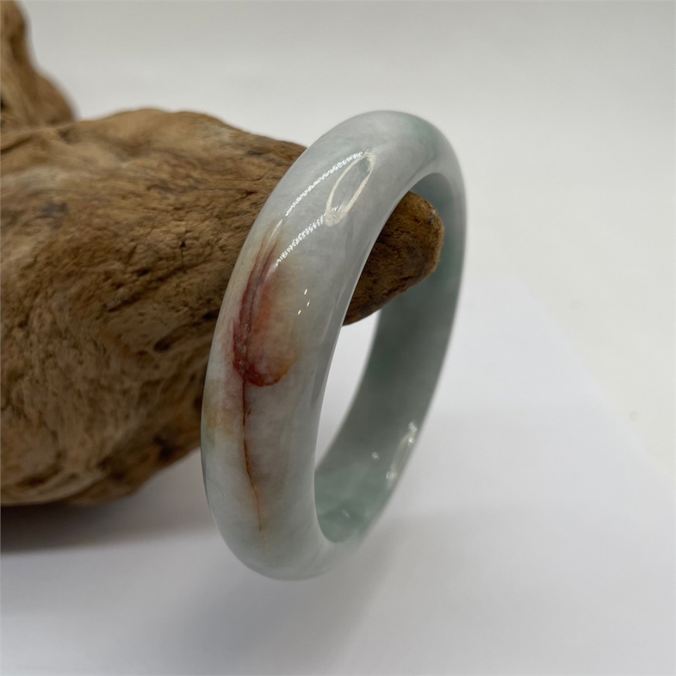 ★★★瑕疵特賣★★★【【肌容雪】緬甸天然A貨翡翠白底紅特色翡翠手鐲編號893(鐲寬57.7mm #18.5號)