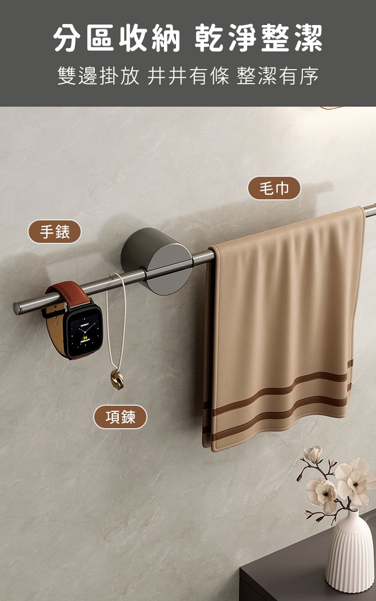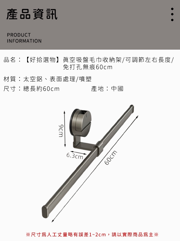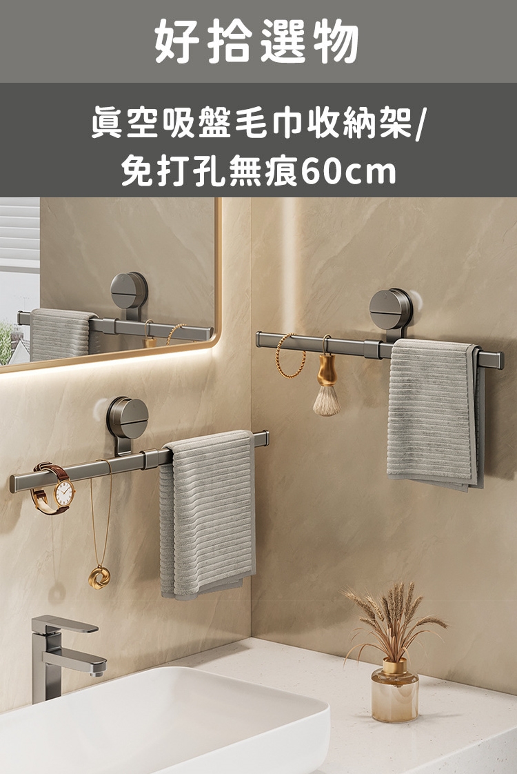 品名:【好拾選物】真空吸盤毛巾收納架/可調節左右長度/免打孔無痕60cm