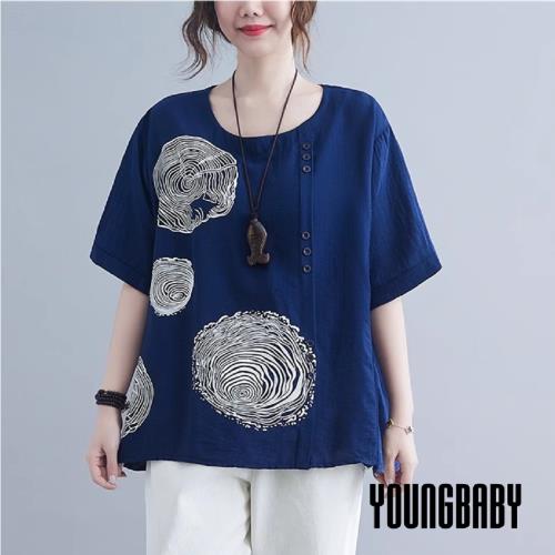【YOUNGBABY中大碼】螺旋漸層印花透氣棉麻上衣 中大尺碼女裝
