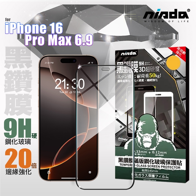 NISDA for iPhone 16 Pro Max 6.9 3D滿版超硬度黑鑽膜玻璃貼
