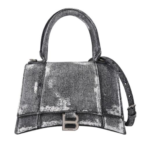BALENCIAGA 巴黎世家 593546 Hourglass 刷舊塗層布沙漏包.黑白