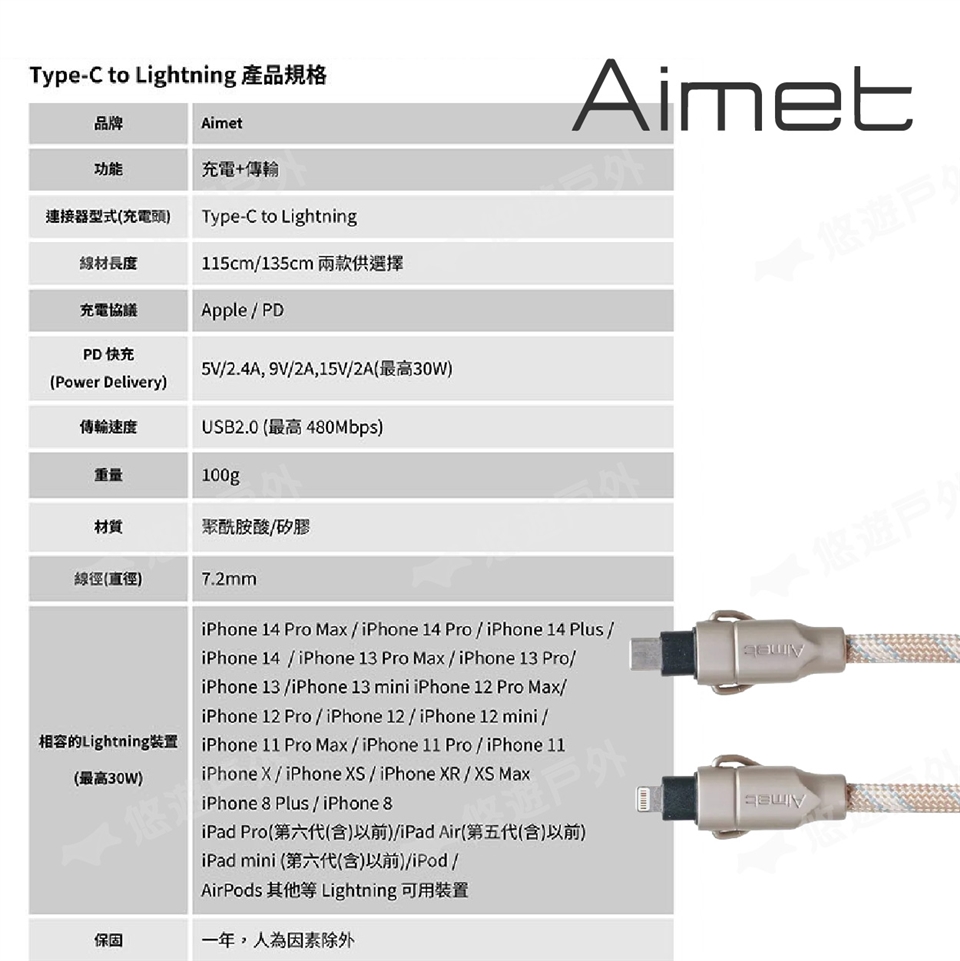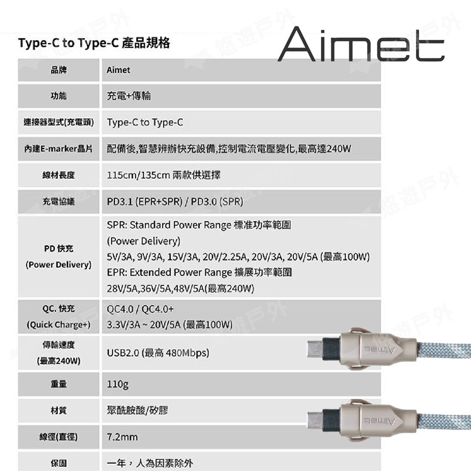 【悠遊戶外】Aimet 240w背充線 六色