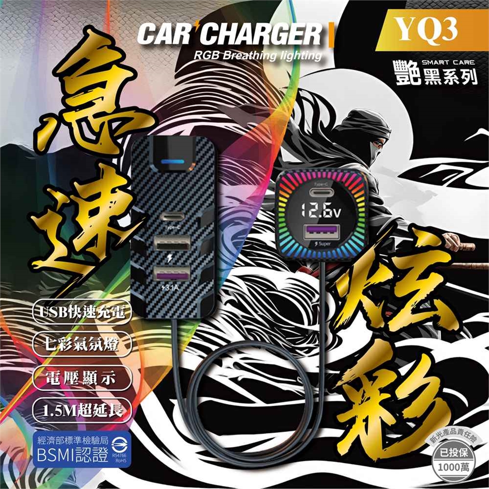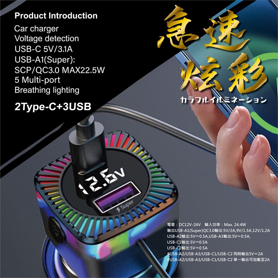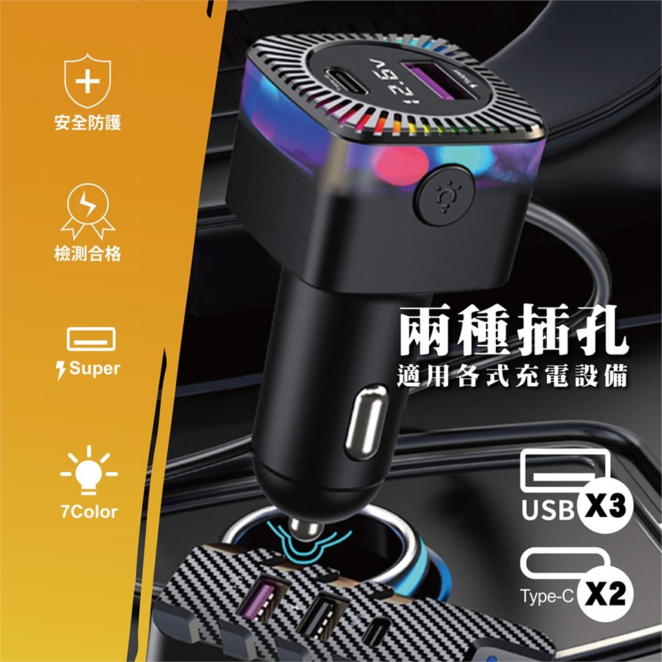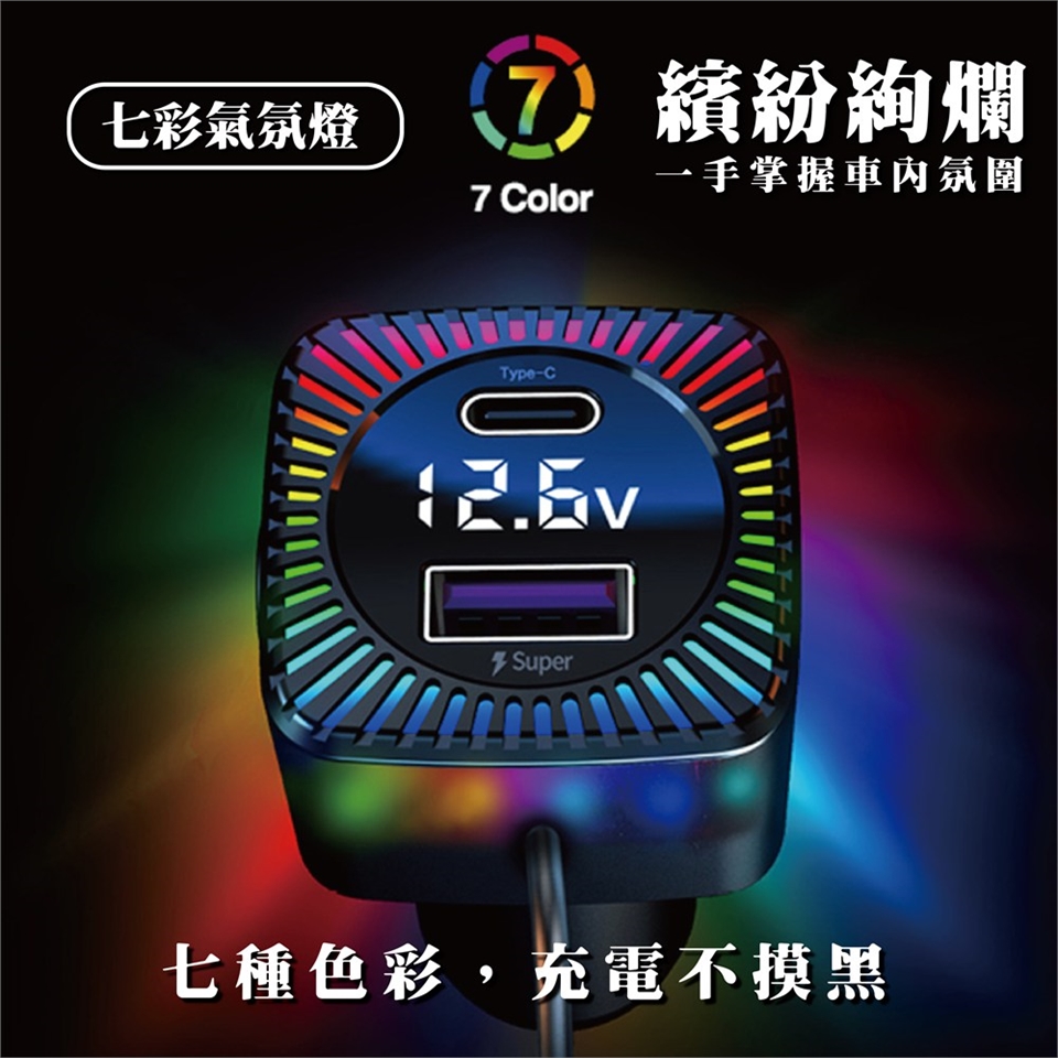 這款車用快充頭融合實用與美感,設計精巧不佔空間,支援超級快充功能,讓手機快速滿電。內建七彩炫酷LED氣氛燈,隨車內氛圍變化,更添個性風格。即時顯示電壓狀態,保障愛車與設備安全。產品通過台灣BSMI安規檢驗,包括電磁干擾與電流異常測試,品質與安全雙重把關,是你車內必備的高效充電配件。