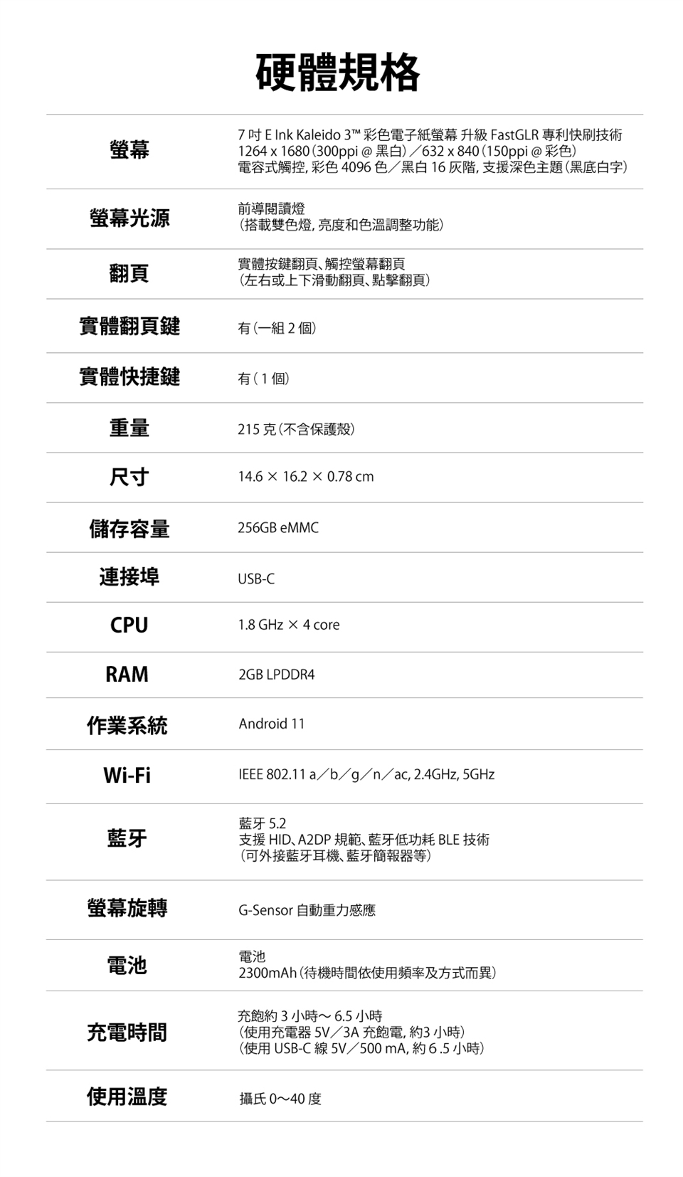適用產品: 7 吋 mooInk Nana彩色電子書閱讀器