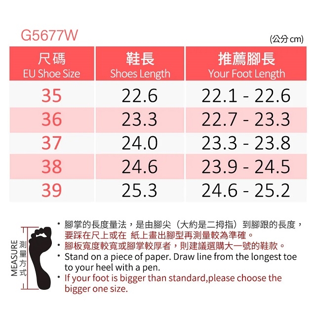 量一下自己的腳長和腳寬