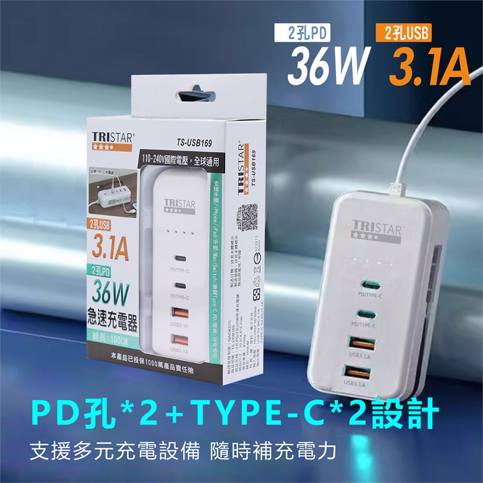 .2孔USB3.1A、2孔PD36W