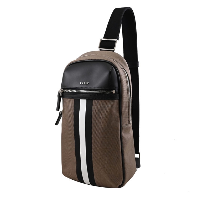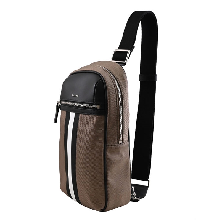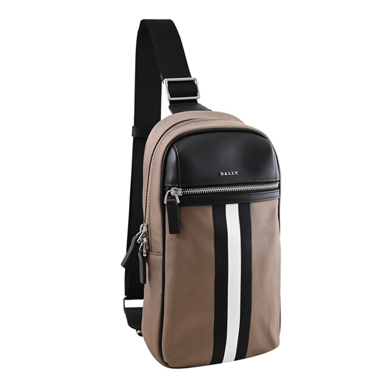 瑞士工藝代表百年精品BALLY,高質感的壓紋獨特設計,十足都會休閒時尚造型,也是很多男性首選的低調奢華品牌,專櫃熱銷包款,採用質感牛皮拼接帆布材質與金屬LOGO,拉鍊開口/內有1貼袋/外1拉鍊袋可供收納,內可放長夾、手機、鑰匙等隨身物品,可做單肩後背包或胸口包使用,尺寸大小適中,不論是外出或旅遊皆為實用。